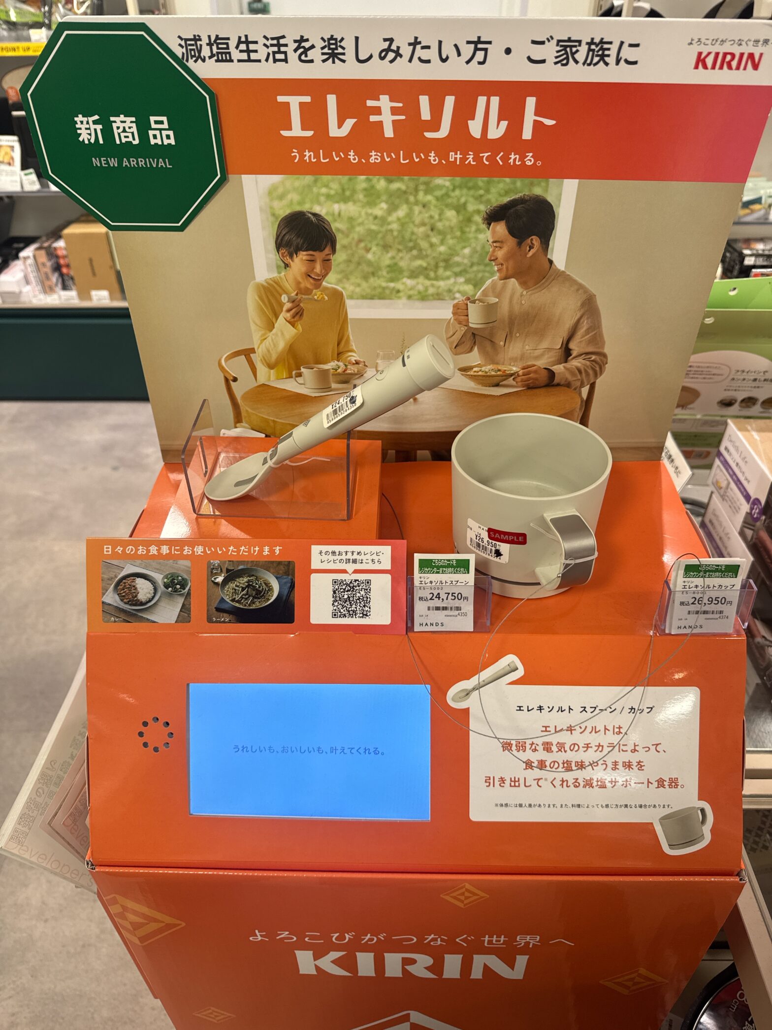 皆さん、こんにちは。大阪制作部の松本です。 4月に入り街中の景色も一気に春めいてきましたね🌸 さて、今回はご紹介するのは、KIRINのエレキソルトのフロア什器です💁♀️ 売場に映えるオレンジの台座にロゴがあしらわれたシ …