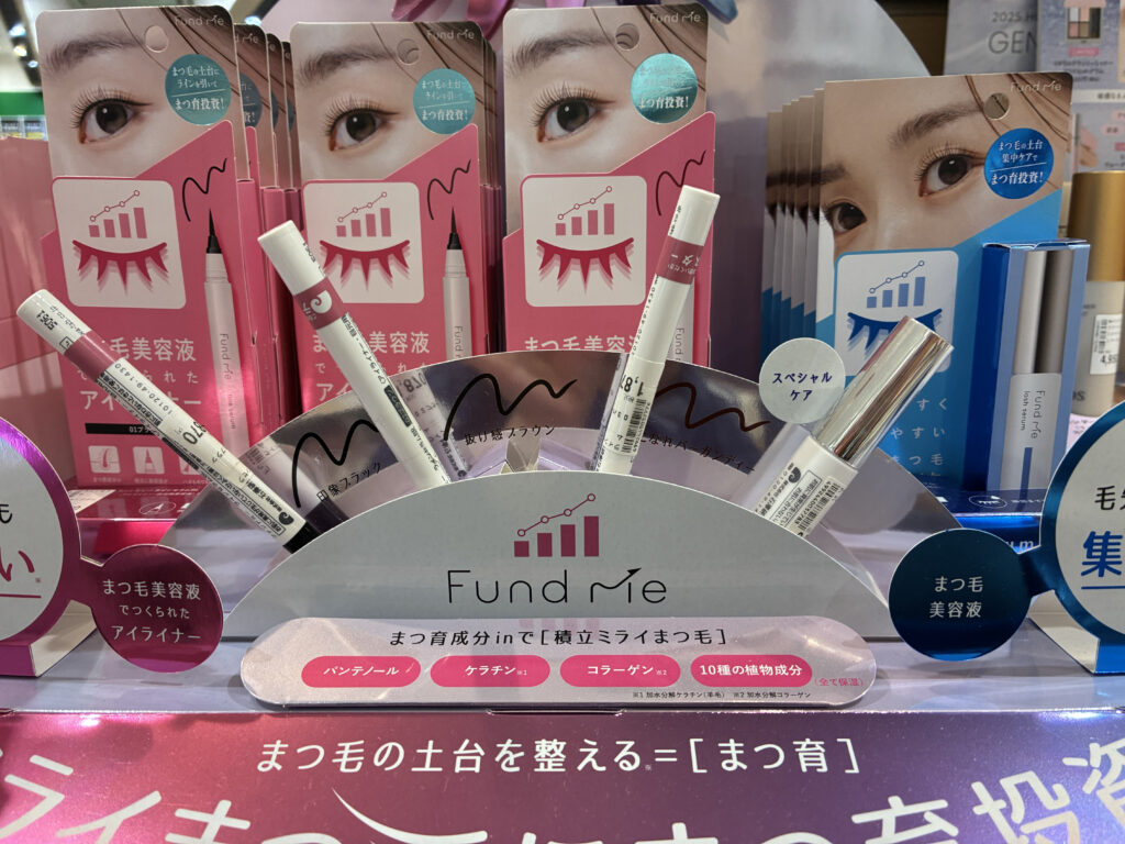 バックボードに付いたまつ毛を型取った装飾が、一目でまつ毛に関連する商品だと印象付けていると思いました。