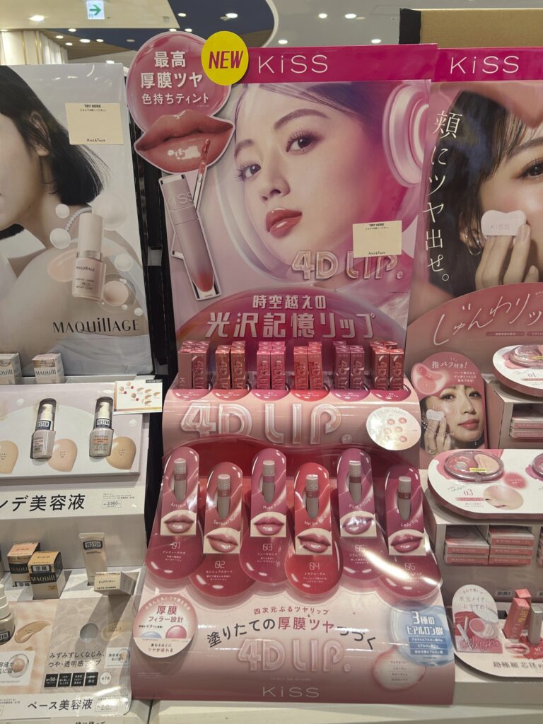 それがこちら、KiSSの新作4Dリップのフロア什器です。