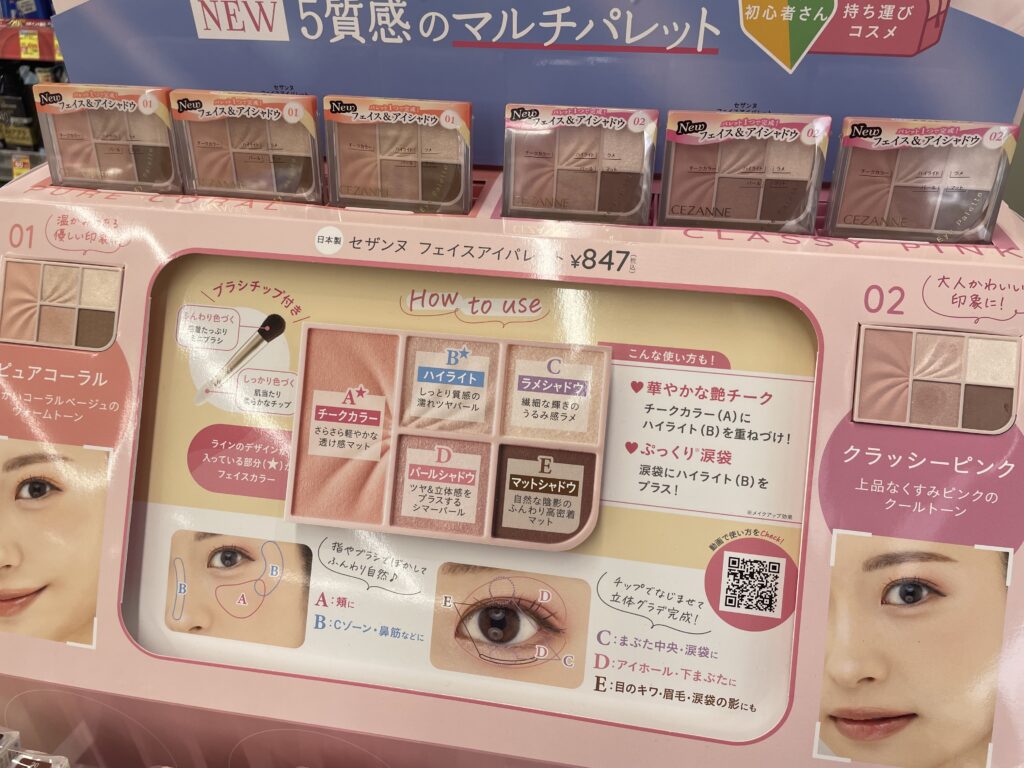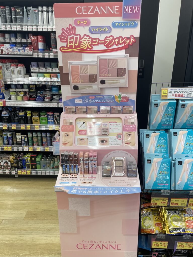 日本のプチプラコスメブランド「CEZANNE」のフロア什器が